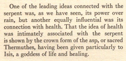 The snake has long been associated with healing, ironically, which you’ll see in Moses’ bronze serpent pole used to heal snakebites. In ancient Egyptian traditions, and Celtic, you’ll also find snake/healing associations.